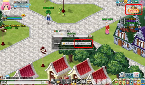 如下图所示,在新春活动进行期间,点击游戏画面右上角的幸运转盘。然后选择弹出框上的“超级幸运转盘”。