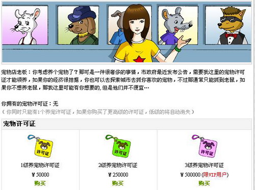 2.宠物:由于宠物系统要等正式内测才开放,所以暂时买不了宠物领养许可证。