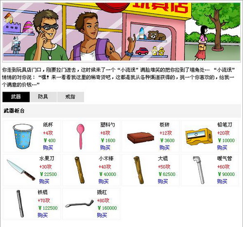 3.装备:都是现实中非常常见的物品,但是价格可是要翻很多倍哦。一根铁棍可要十几万呢。