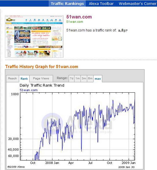 (图:51wan的alexa排名)