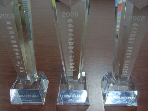 记者从各方媒体的资讯上看到,在2008年,51wan获得了媒体和用户的一直认可。“百度游戏风云榜”(方便面三国)上的折桂获得了百度这一中国最大搜索引擎的承认;“China joy组委会金翎奖”最受欢迎网页游戏(乱舞春秋)全靠广大玩家的大力支持;“网博会最佳网页游戏、最受期待网页游戏”(《萌之战争-怪叔叔的阴谋》、《剑侠情缘web》)则是得到了网博会专家组的青睐。
