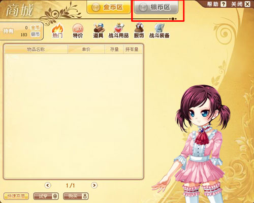 什么什么?你被骗啦?商城空空如也?道具物品已经被抢购一空?别紧张别紧张,马上点击“银币区”(如图所示)再看看,哈哈,道具东东都出来了吧!