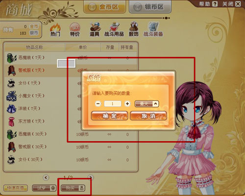 选中心仪物品,下一步当然就是赶快把它们买下来喽!点击“购买”按钮,系统会自动弹出选择购买数量的小对话框,输入你想要“扫货”的数量,确定,就成功啦!