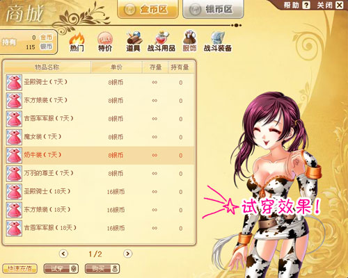 熟悉MM的玩家都知道,美眉们的每套衣服,都有专属的配饰来搭配。那么,今天MM另一项重要的游戏更新举措,便是在人类区的服饰店内增加了许多前所未有的配饰!通过为套装增加配饰,大家可以看到美眉精致的细节变化哦!以奶牛装为例吧,单看商城卖的这个主服,虽然很清凉很可爱,却并不抢眼,但是再加上一系列的配饰的话……