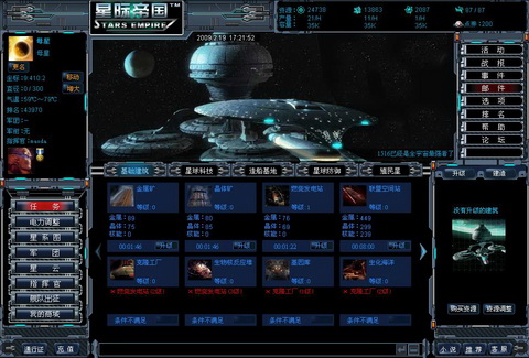 宇宙霸主争夺中,各位玩家为了扞卫荣誉,展开了猛烈的对攻。一艘强悍的巨大舰船正向星球缓缓驶来,N多的导弹发射器让人不寒而栗。对手感觉到了危险的来临,貌似做好了充分的防御部署,各种防御舰船、防御科技都准备就绪,战火一触即发。巨舰已经靠近对手,进入射程开始进攻,巨舰对星球展开了猛烈的轰炸,星球做出了顽强的抵抗,战争一时间进入了白热化。巨舰的强大让人无法想象,不久之后星球抗不住巨舰的猛烈攻势,防御所剩无几。就在这千钧一发的紧张关头,星球临近的帝星派出了数十艘舰船对自己的“邻居”进行了援救,巨舰见势不秒,迅速的终止了入侵,消失在茫茫宇宙之中。星球成功的抵抗了强大对手的入侵。前所未有的万人星战体验,尽早星战
