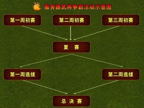 1、 本次“武将争霸赛”将分为单组服务器赛与跨服赛2大部分。