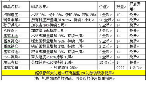 首先:在游戏中,游艺《网页三国》所有的建筑时间将减半,相对发展速度更快。