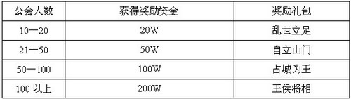★补充说明:任何申请公会的会长提交资料需保证真实有效,游戏开服两天内的会员上线率为实际入驻人数参考标准,所有礼包在确认资料无误后,于开服两天后发到会长处,会长自主分配
