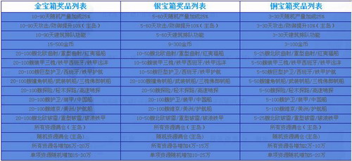高级奖品的出现概率从高到低排序为:金宝箱→银宝箱→铜宝箱
