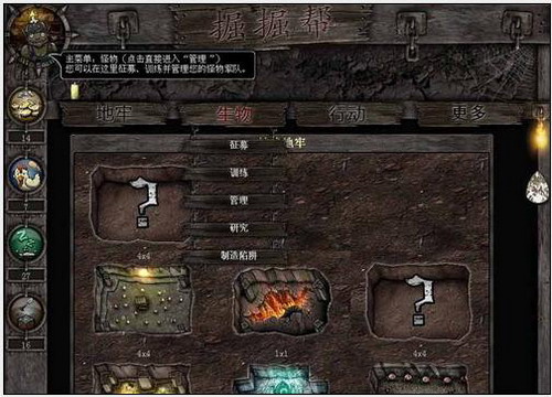 初入《掘掘帮》,您首先应该选择“地牢”主菜单中的“扩建地牢”菜单建造新房间。其后,雇佣一个新地精将其加入到挖掘队伍中,您就可以命令它们挖掘黄金了。同时,也要了解一下建造新房间、升级现有房间以及雇佣新怪物的各种需求条件。