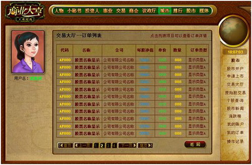 除了一般股市的股票买卖交易,还可以让自己的公司上市,并对外发售自己公司的股票!对于有实力的玩家,可以大量收购某一公司的股票,从而成为该公司的股东之一,然后坐享其成! 自由城内,哪只才是潜力股?