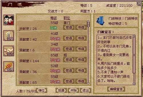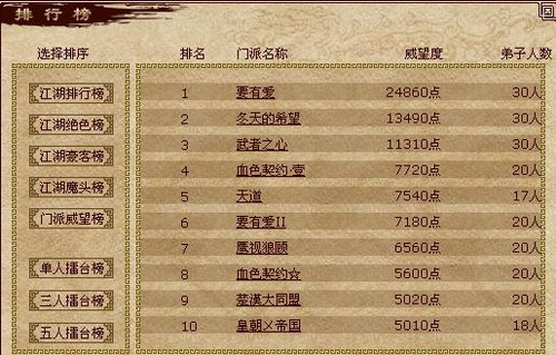 正所谓“一个好汉三个帮”,单枪匹马独挑整个武林,明显是很不明智也不现实的(跳过悬崖学过至尊武学的除外),这种时候,您需要的是一批忠实的伙伴和支持者,而开山立派,绝对是最佳的捷径。修炼绝世武功,独孤求败于天下是每个武者的梦想;可开山立派、锄强扶弱则是真正侠客的追求。在《武林传奇》中,门派掌门拥有着整个门派的生杀赦免大权,更是门派命运的最终决策者,想要成为“武林盟主”,就必须先成为一代掌门。