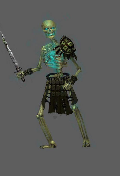 这个浑身泛着亡灵生物邪异灵光的骨架般的死物(-。-姑且称之为死物吧!)便是大家非常熟悉而又陌生的骷髅兵了。作为亡灵族的初期兵种,骷髅兵大抵是以死亡后的人型生物为基础召唤而来的,而这些低阶亡灵通常拥有简陋的装备——锈蚀的刀剑和粗糙的护具,不过虽然骷髅兵装备简陋,但亡灵生物的本质却使得他们凶残异常,并且造价低廉,是亡灵族初期非常价廉物美的选择。
