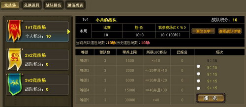 二、每个玩家单人场每天最多报名3次,每个战队每天最多报名3次。