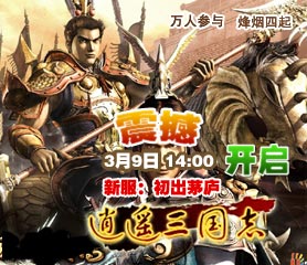 GGwan网页游戏平台网页游戏《逍遥三国志》新服【初出茅庐】, 在众多三国网页游戏粉丝的翘首期盼下,将在2009年9月9日14:00正式开服!开服当天开始就有精彩上线活动等着你!主要活动除了领新手卡和赠送道具之外,还有更刺激的活动,保证让你热血沸腾!