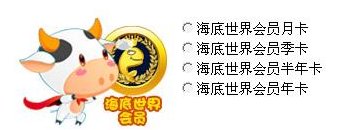 下面有一个详细的图表说明海底世界的各项会员服务,小鱼们准备起来,向海底世界的会员进发吧!
