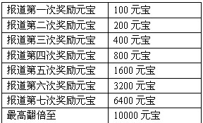 2. 活动结束后进行报道的用户获得的元宝奖励。