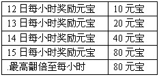 12日起 ,每小时报道抢元宝的数量将以翻倍形式奖励,延期开服每延长一天,奖励翻倍一次