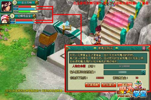 魔力最新功能“生命之源&魔力之源”是一款超级大药剂!帮助解决长期困扰无数玩家的体力见底、喝药瓶添加不及时等难度。这款大药剂有十万点红蓝储备,更能战后自动补给,避免了众多玩家手忙脚乱的翻背包!点击红蓝条末端打开界面,只要一点点花费,就能获得贴身小护士的全方位护理,呵护你的身体健康哦!