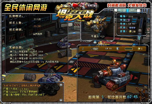 《坦克大战online》目前正在火爆的首次技术性封测中,加入测试马上体验这款真正免费的经典游戏,一同回味那段激情飞扬的时光!是男人就来打坦克,与我们一同作战吧!