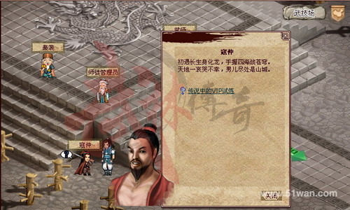 网页游戏第一平台51wan推出的RPG武侠网页游戏大片,在游戏中,玩家将扮演一名快意恩仇的唐朝侠客,闯荡江湖,争霸武林。游戏不仅拥有独特的经脉武学修炼系统、RPG家园建设发展系统,还设计了古朴的画面、丰富的场景、别致的格局,再加上几百种的武器装备、近千项的各式任务,以及门派、闯关、副本、擂台、挂机等特色玩法,让《武林传奇》成为了RPG类武侠网页游戏中的武林盟主!