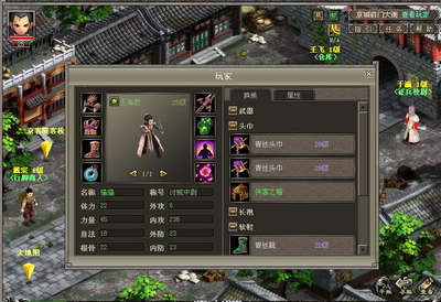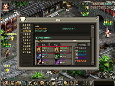 点击图中标示的小箭头,可以将人物切换到家将,给家将换装。