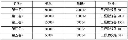 2. 活动结束后服务器充值排名前5名的玩家将会获得物质,资源和白银的奖励