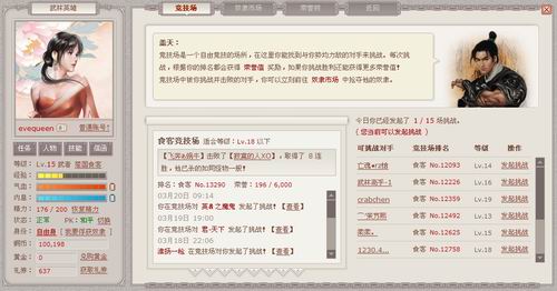 初来乍到人生地不熟,想要做出一番成就,必先广交朋友寻找合适契机!金酷《武林英雄》给予你这样一个机会,通过金酷《武林英雄》竞技场你可以选择与竞技场排行榜内任意玩家进行PK,通过互相切磋检测武技及时发现自己不足之处,通过相互交流探讨了解最新信息提高自我,通过战胜其他玩家获取最佳竞技场排名。伴随你实力不断递增,名气日益提升,便可招兵买马,笼络人心,号令群雄!