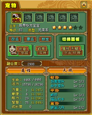 目前的昆仑世界中,一星的宠物最常见,二星的宠物是眼下游戏玩家的主流宠。而作为三星、四星的宠物则已经是游戏中玩家人人渴望的极品宠啦。