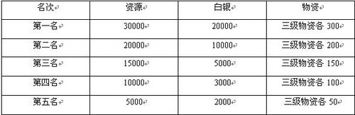 2. 活动结束后服务器充值排名前5名的玩家将会获得物质,资源和白银的奖励