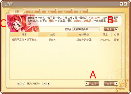 C:花仙子,这是庭院里的NPC,她会在一些界面中告诉玩家这个界面能做什么。
