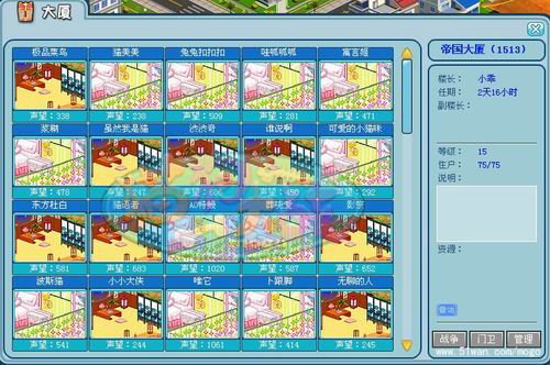 一直有玩家有这样的想法,“能不能亲手创建自己喜欢的高楼大厦”,《猫狗大战》帮你实现了这个愿望。当你在城市中选定了某个小楼后,就可以攻占一定范围内的垃圾桶、鸟巢、下水道等资源点,用键盘就可以简单的进行控制。游戏中,还有各种公共据点,如:商城、宠物商店、镖局、拍卖场等等,可以让你不用在游戏界面中寻找,方便玩家直接进入后操作。当然,这些都是小问题,能够在这模拟的城市中自己一砖一瓦建造起一座摩天大厦,这本身就是种极大的乐趣。不可否认,《猫狗大战》之所以开发模拟城市,为饥渴的玩家提供了一个建立属于自己大厦的机会,的确是功不可没的。