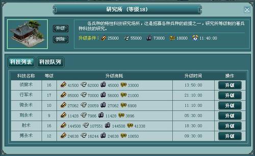 在研究院中,主要负责以下科技的研究升级,相关影响兵种罗列如下。