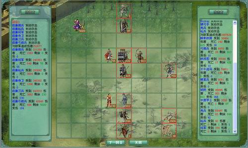 两军相遇后,系统会虚拟出一个9*9大小的战场,交战双方的军队会分别安置在两边。根据规定的战场规则进行移动和攻击,直到交战结束。而这个过程将以图形动画的形式完全重现在玩家们的面前。