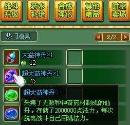 小编温馨提示:不同规格的丹药所存储的生命和法力都不相同,用光之后丹药自动消失,所以玩家自己千万注意丹药上面的余值显示哦!