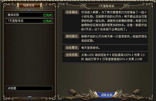 为了能够让广大玩家更好地开始新世界的探索,体验游戏带来的乐趣,官方决定加大活动的奖励。从4月1日开始,原“登录有奖,7天连环送”活动时间升级为14天,只要您为第一次注册并登陆的玩家,都将在开始游戏的前7天里每天都可以获得200点卷和2小时双倍行军速度、双倍经验获得的奖励,在开始游戏的8~14天里每天仍然将可以获得2小时双倍行军速度、双倍经验获得的奖励。