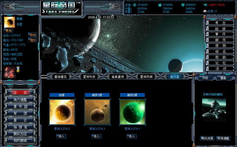 全球首款出口日本的星战类网页游戏《星际帝国》,一个五彩缤纷的宇宙世界,一个战火纷飞的银河沙场,万人星战,宇宙趣闻,在这里你将体验到与众不同的乐趣。