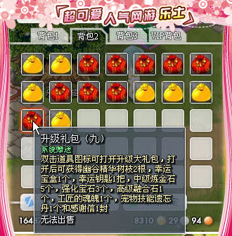 能够在战斗结束自动回满生命与魔力值的能量球、实用的角色双倍经验卡、各种增强装备属性的炫目宝石,众多货真价实的RMB道具统统包含在升级礼包当中,升级简单、轻松!不花钱也能享受RMB玩家的礼遇,你还等什么呢?