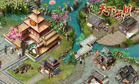 城池内景:“忽逢桃花林,夹岸数百步,中无杂树,芳草鲜美,落英缤纷。复行数十步,豁然开朗。土地平旷,屋舍俨然。有良田美池桑竹之属。阡陌交通,鸡犬相闻。其中往来种作,男女衣着,悉如外人,黄发垂髫,并怡然自乐。”无比精细的表现手法和精密的笔法,将三国典雅、古朴、真实的展现在玩家面前。当然还有气势恢宏的战场,将城内、城外,各各兵种作战细节都描绘的十分细致。这就是《天下无双》的精髓之一。