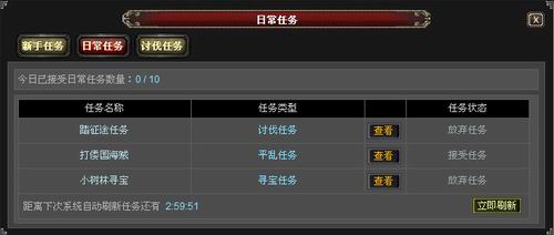 《天下无双》不同于其他的策略型网页游戏,而最大的区别之一就是任务系统了。前期的新手任务会给你大量资源,并且根据任务指示建造是最为科学的。前期一定要搞好资源建设,尤其是木资源。每日10个日常任务,是你获取各种道具和宝箱不容错失的机会。“滚滚长江东逝水,浪花淘尽英雄!”讨仗任务开启您在三国的征战之旅。