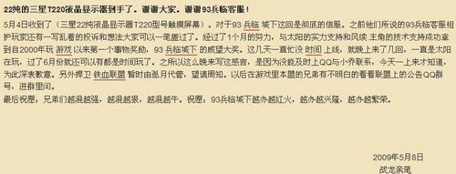 三星22寸纯平液晶显示器T220   获得玩家:铁血々战龙
