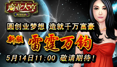 2009年5月14日11:00,让我们一起相约在《商业大亨》新服“雷霆万钧”,创造辉煌人生!实现宏图霸业!