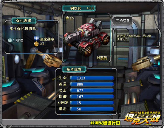 进行+1—+5的强化是每升一级,能强化一次;+6—+10的强化则要每升两级才能强化一次。准备好一定数量的银币和勋章就能开始强化了。简单的操作之后,强化成功的坦克会发生惊人的变化,赶快来看看强化的神奇功效吧!