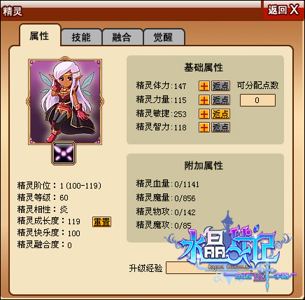 精灵系统为玩家带来一个并肩作战的小精灵,它将无时不刻的陪伴在玩家身边,与玩家共同成长。精灵初始状态是“精灵蛋”,等级成长最多100级,受到“成长度”的数值影响,精灵等级的提升的同时,属性会有不同的提升点数。“相性”是精灵特质的专有称谓,每一个精灵都拥有代表战斗优势的不同相性:[风]、[炎]、[冰]、[地]。精灵根据不同“相性”出现在玩家身边,玩家拥有了属于独特“相性”的精灵后,同时拥有了这种的“相性”。小精灵与玩家一路相依相偎,游戏的世界不再孤单寂寞!