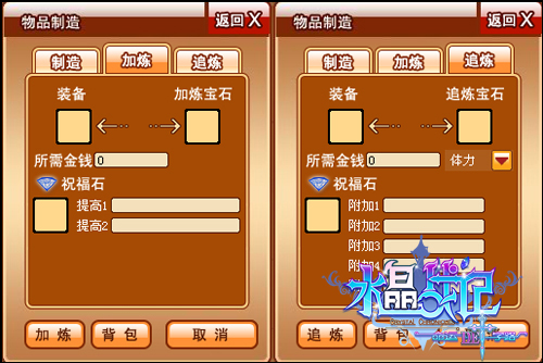 追炼和加炼两种提升装备属性的系统,成为玩家追求极品装备不容错过的途径!追炼可以增加装备的额外属性,随着追炼次数的增加,装备的属性将得到不断的提高;加炼可以提高装备的基础属性,随着加炼次数的增加,装备的基础属性会得到不断的提高;加炼和追炼前,要准备好加炼宝石和追炼宝石哦!