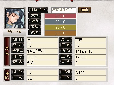 每个角色的四围(武力、智力、**、统帅)最高上限为100,合理的添加属性,才是能文能武的将帅之才!