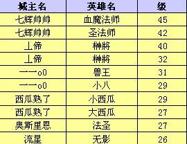 英雄排行榜,在英雄最先到达10级的玩家中,"老农民的兄弟"意想不到地登顶,所以在这里给这些"速度达人"说声辛苦啦.