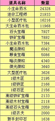 小型生命药水和迷你工程师需求巨大,独占鳌头.道具使用量前20名: