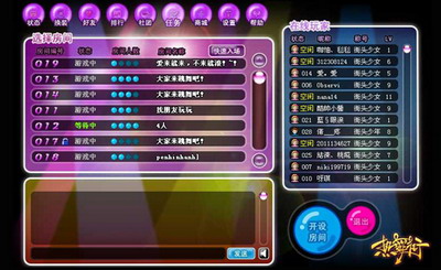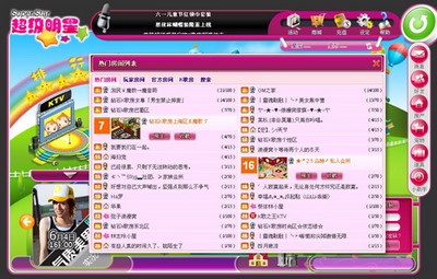 《超级明星》是一款可以集合在线K歌、明星、小屋、装扮、宠物等功能的大型休闲游戏、交友、娱乐社区。您可以在这里尽情发挥您的靓声亮嗓,随时随地集合众多好友来开办KTV聚会、玩游戏,举办您自己的个人线上演唱会。尽心培养您的演唱天赋,提高您的各项游戏属性。进入游戏后,玩家可以根据不同的房间名称,来选取自己喜欢的房间进行游戏。