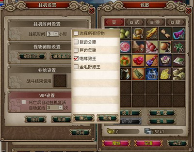 游戏中的挂机系统可谓功能全面,操作方便。玩家只需在有野怪的场景中选择“挂机”,即可对挂机时间、刷怪类别、掉落宝物以及战斗结束后的动作等进行设定或筛选,让游戏真正实现自动化运行,也让玩家们轻松升级。